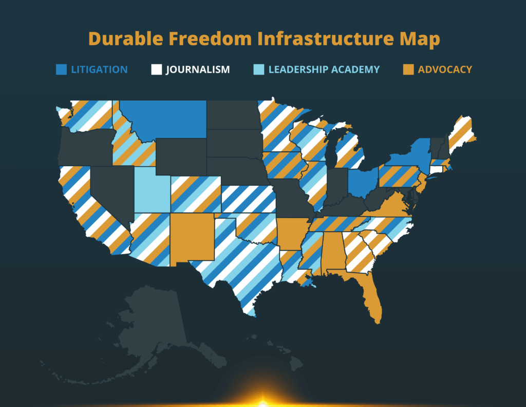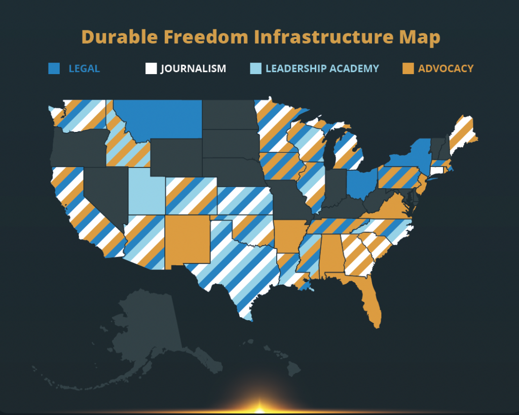 In that time, we have observed six critical components, what we’re calling the Durable Freedom Infrastructure, that state-based organizations are increasingly building and deploying to achieve greater influence, more effective advocacy, and more sophisticated strategies.